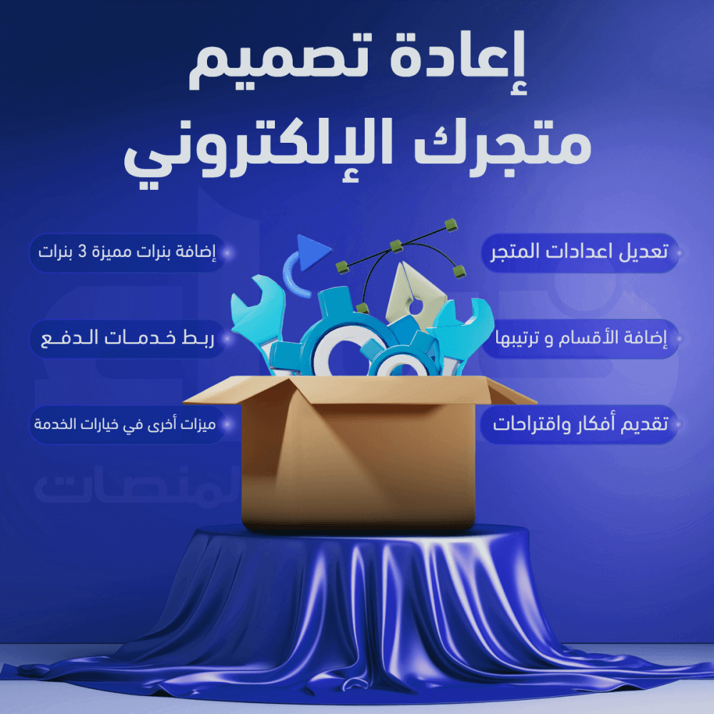 إعادة تصميم متجرك الإلكتروني تهدف إلى تحسين تجربة المستخدم، وجعل الموقع أكثر جاذبية وسهولة استخدامًا. قد تكون هناك حاجة لتحسين التصميم البصري، تحسين الوظائف والمميزات، وتحسين تجاوب الموقع على مختلف الأجهزة والشاشات.
