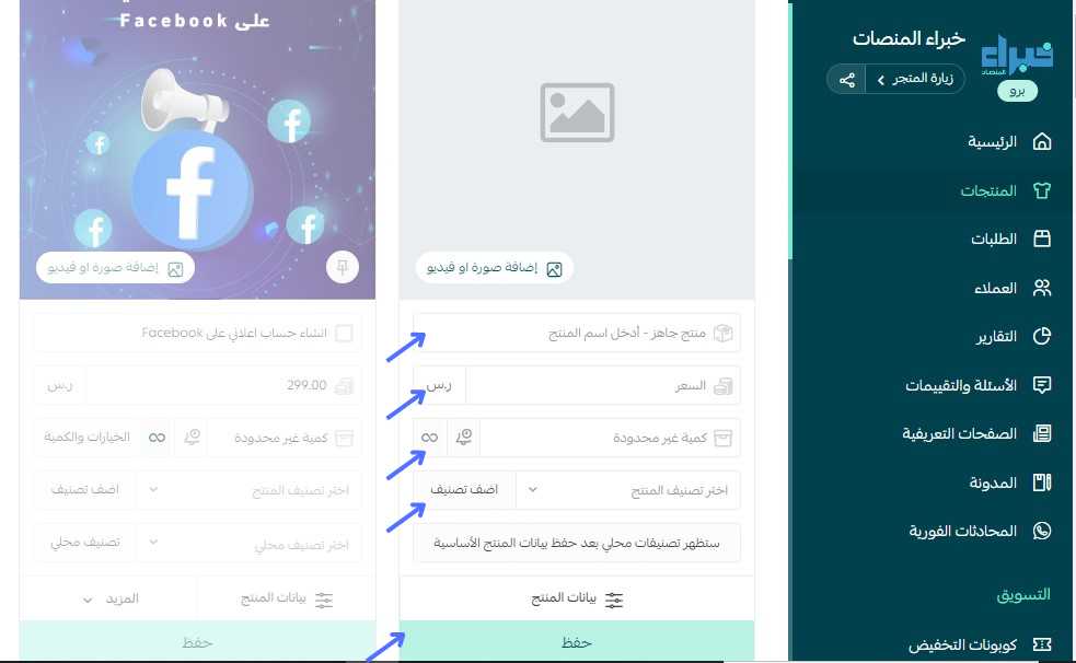 ستظهر لك عدة حقول لإضافة المنتج.