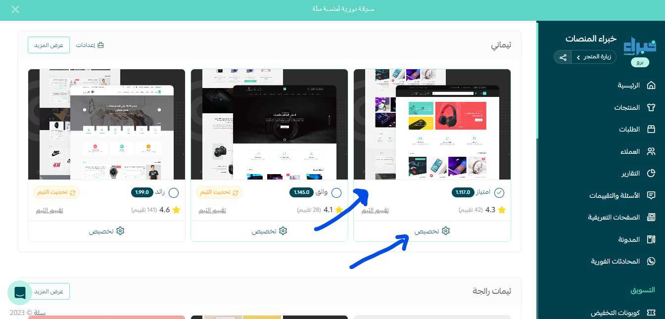 من لوحة تحكم في منصة سلة ثم بالضغط على تصميم المتجر أسفل القائمة العمودية.