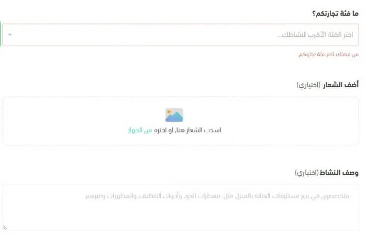 أولا عليك تحديد حدد فئاتِ نشاطك التجاري، هذا الحقل إجباري.